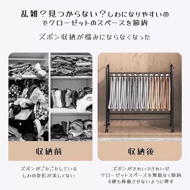 【360°可動パンツラック】このパンツラックには滑車が付いており、360度移動でき、収納と整理が便利で、時間と精力を節約でき、20個のパンツラックが付いており、大容量収納で、着たいパンツを簡単に見つけることができ、何度も何度も何度も何度も何度も何度も何度も何度も何度も何度も何度も何度も何度も何度も何度も何度