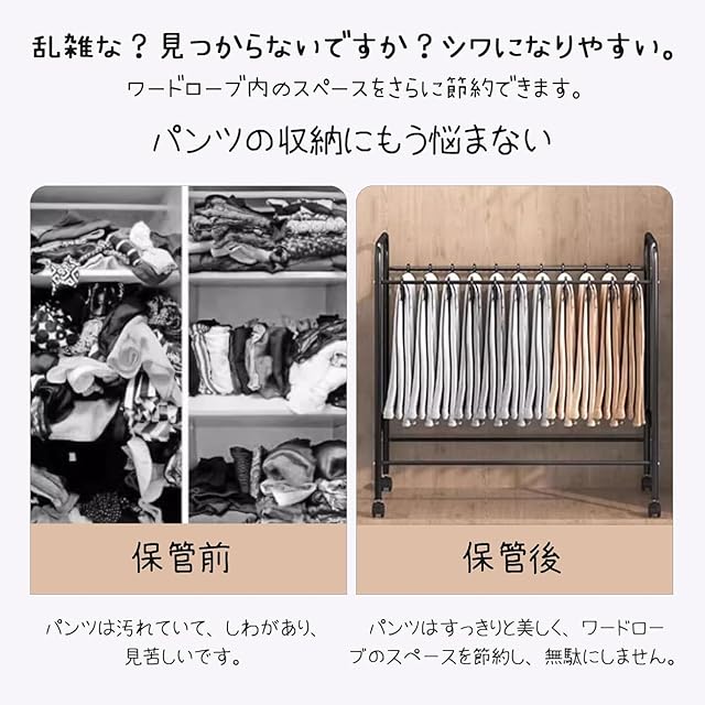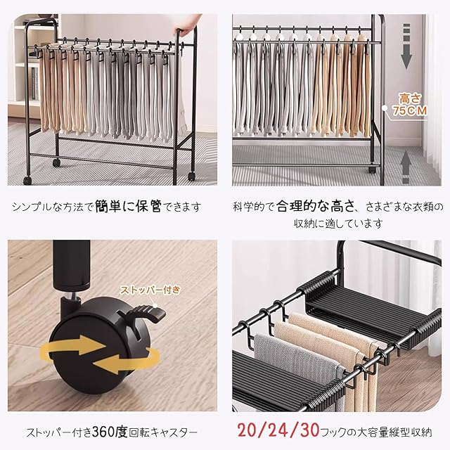 【移動も固定もストレスなし、暮らしに溶け込む快適設計】ズボンハンガーラックは、360度回転式のキャスターを備え、スムーズな移動と安定した固定が可能です。リビング、ランドリールーム、クローゼットなど、どこでも自由に動かせる柔軟性が魅力です。掃除や模様替えの際も移動が簡単で、日常の使いやすさが格段にアップします。