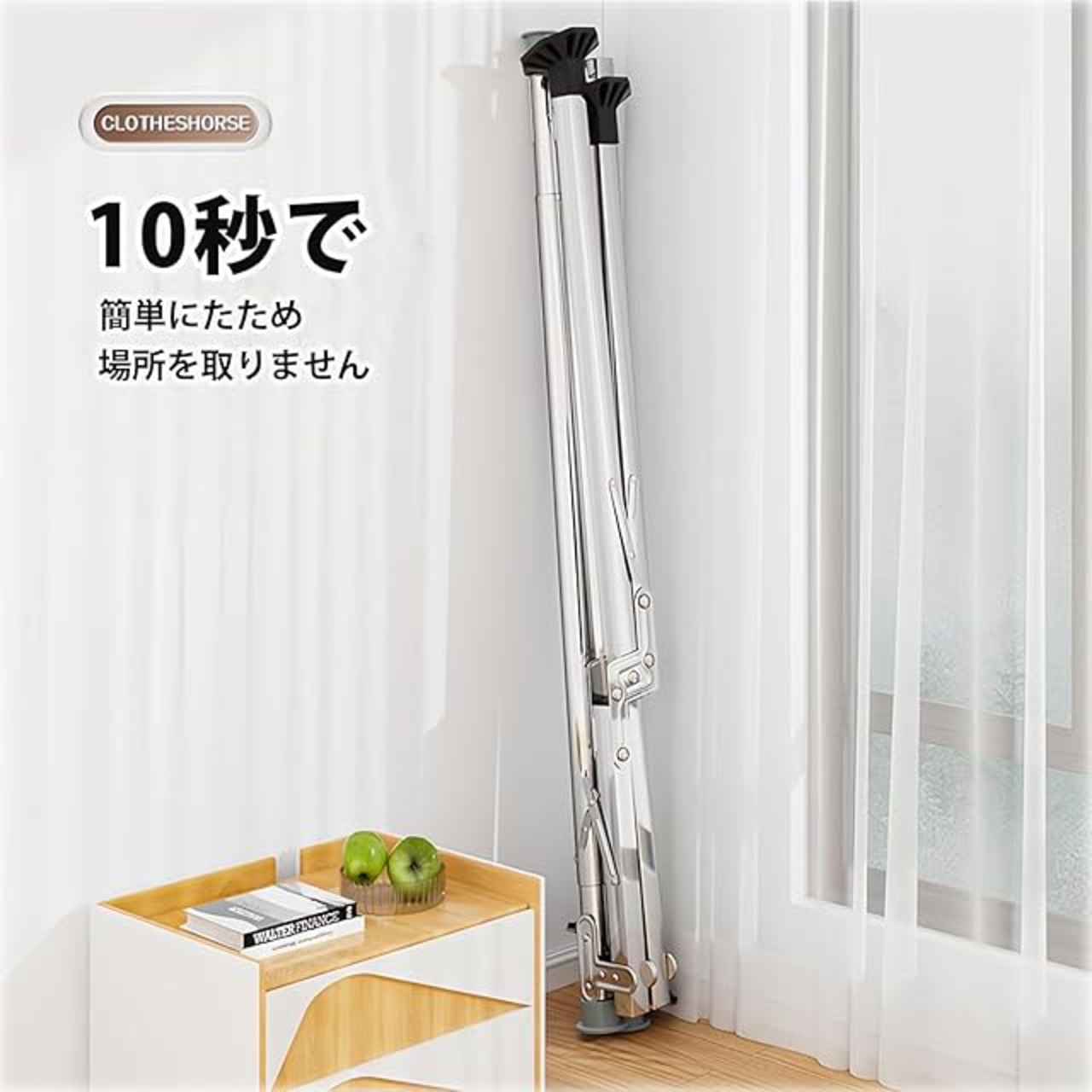 【簡単な組み立てと収納】室内物干しは組み立て不要で、使わないときは簡単に折りたたんで収納できます。場所を取らずに収納することができ、使い勝手が非常に良いです。