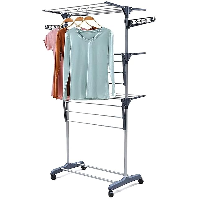 AKOZLIN 洗濯物干し 室内物干し 折り畳み式物干しスタンド 多機能物干し 組み立て簡単 キャスター付き 移動便利 たくさん干せる コンパクト 省スペース ベランダ 物干し台 幅77×奥行57.5×高さ160cm