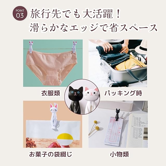 【多用途対応】洗濯以外にも、書類や写真の固定、お菓子の袋とじ、卓上カレンダーの上を挟んでインテリアとしてなど、日常生活のあらゆるシーンでネコちゃんがかわいく活躍。軽量で持ち運びも簡単、さらにちょっとおしゃれです。また、ねこ好きな方へのプレゼントにもおすすめです。