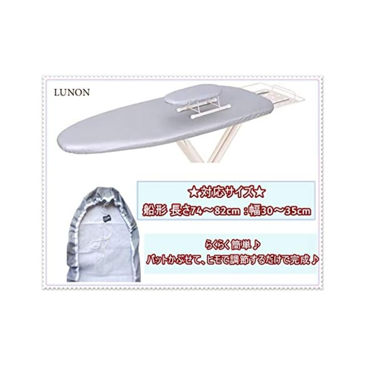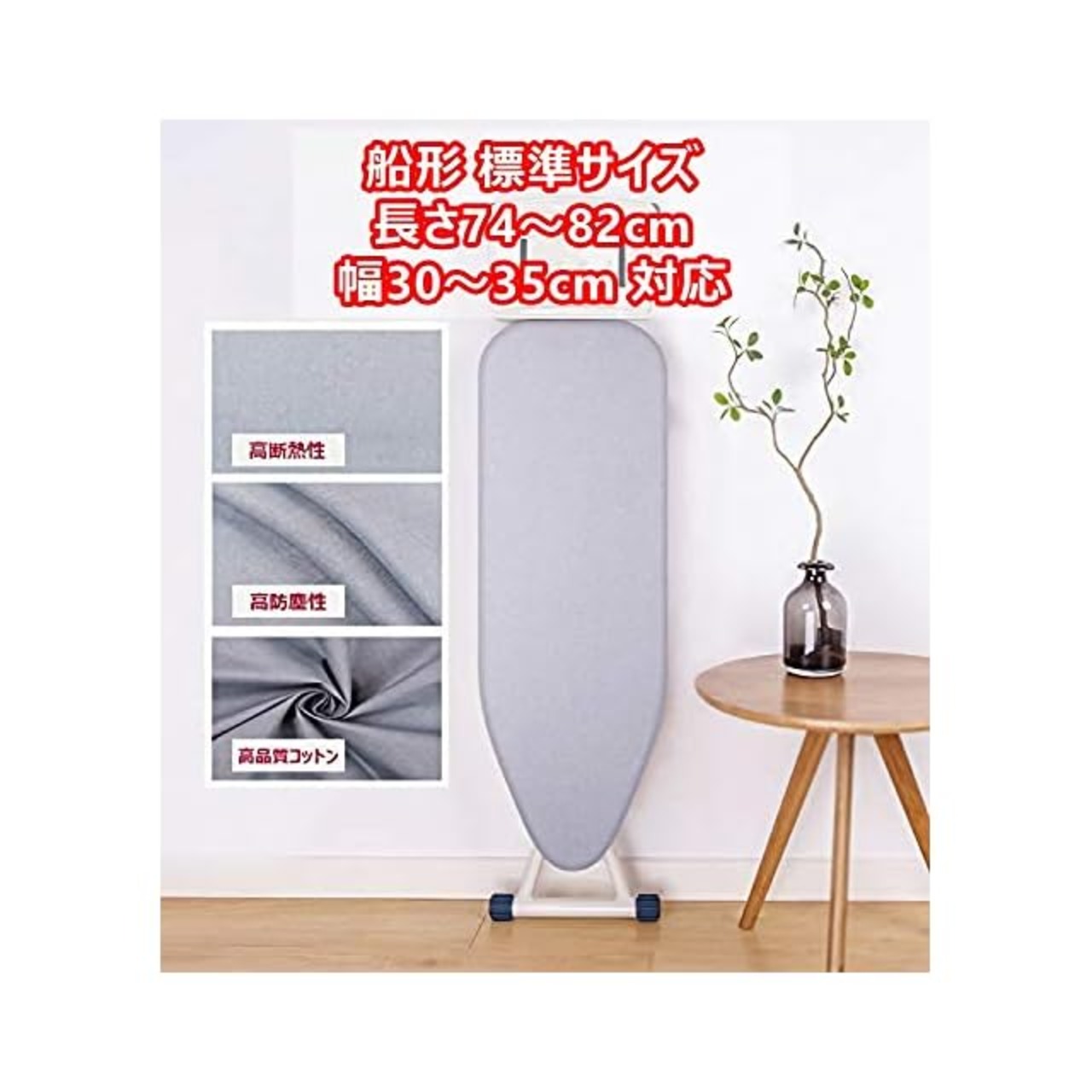 アイロン台 船型 カバー セット ★ 長さ74~80cm 幅30~33cm 厚み約2cmのアイロン台に対応★ カバー本体サイズ90×30cm ( シルバー/ 断熱 フェルトパット ) メジャー付 耐熱 断熱生地 補修 修理 取付簡単<BR><BR>アイロン台船型交換用カバーとフェルトの2点セットです。<BR><BR>古くなったアイロン台にお困りではありませんか?<BR><BR>このカバーを取り換えるだけで、アイロン台のリフレッシュができます。また、へたったアイロン台のクッションもフカフカになります。取付は簡単です。アイロンのすべりが良くなり作業効率もアップします。<BR><BR>コットンに耐熱コーティングがされているので、耐熱性に優れており、使用時も汚れやシミ、焦げ付き、破れなどをカバーしてくれます。<BR><BR>紐がついているので、取付け後に紐で縛れば、すぐに外れることがありません。<BR><BR>交換用カバーとフェルトクッションがセットになっています。是非この機会にお買い求め下さい。※台の厚みによりサイズが小さく感じられる場合がございます。サイズ詳細をご確認の上、ご購入くださいませ。<BR><BR><BR><BR>※説明書は付属しません。予めご了承ください。<BR><BR><BR><BR>