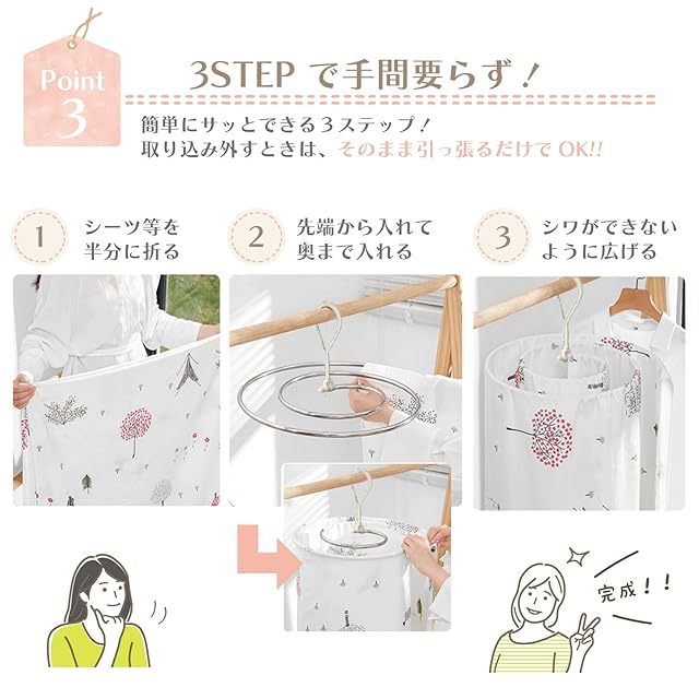 ✅ バスタオルやシーツなど大型のものを干すスペースがない、洗濯物を干すのに一苦労と感じている…という方におすすめ!モニター様からも省スペースで利用できてよかった!限りあるスペースを最大限使える点がいい!とご好評いただきました。