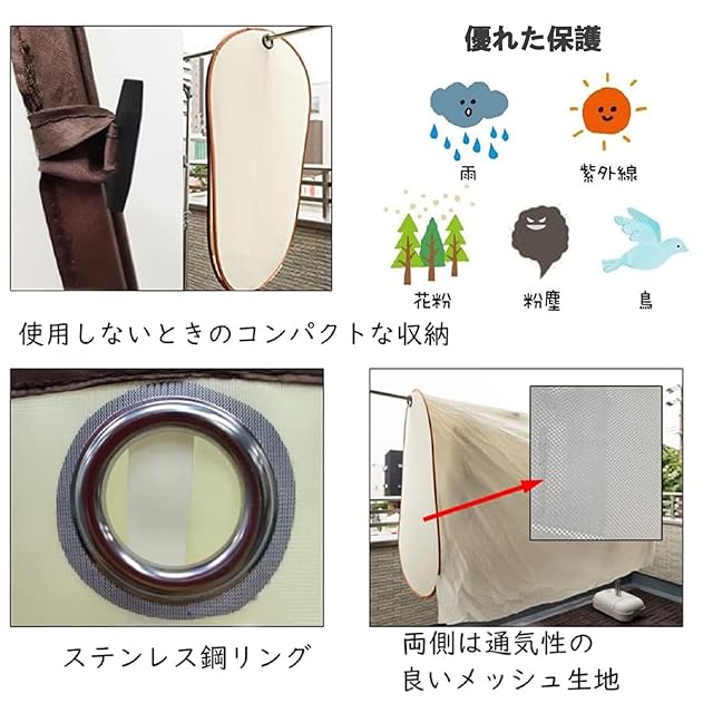 【優れた保護】雨や鳥の糞、紫外線から洗濯物を守る洗濯物カバーです。背面がカバーで覆われていますので目隠し効果もあります。急な雨でも安心!