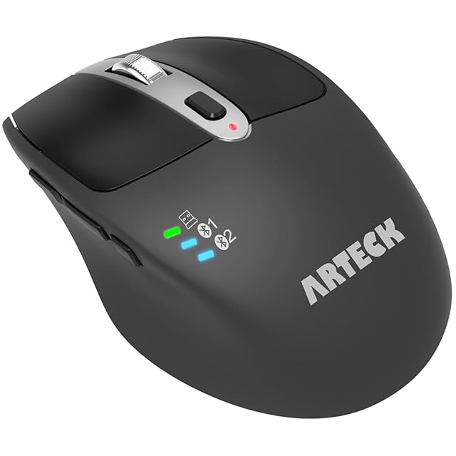 Arteck マルチデバイス 無線 ワイヤレスBluetoothマウス 2.4GHz USB レシバー 人間工学設計 右手静音クリック コンピューター、デスクトップ、PC、ラップトップ、Mac、iPadとWindows10/8 iPad OSとの交換性あり黒 | ascend