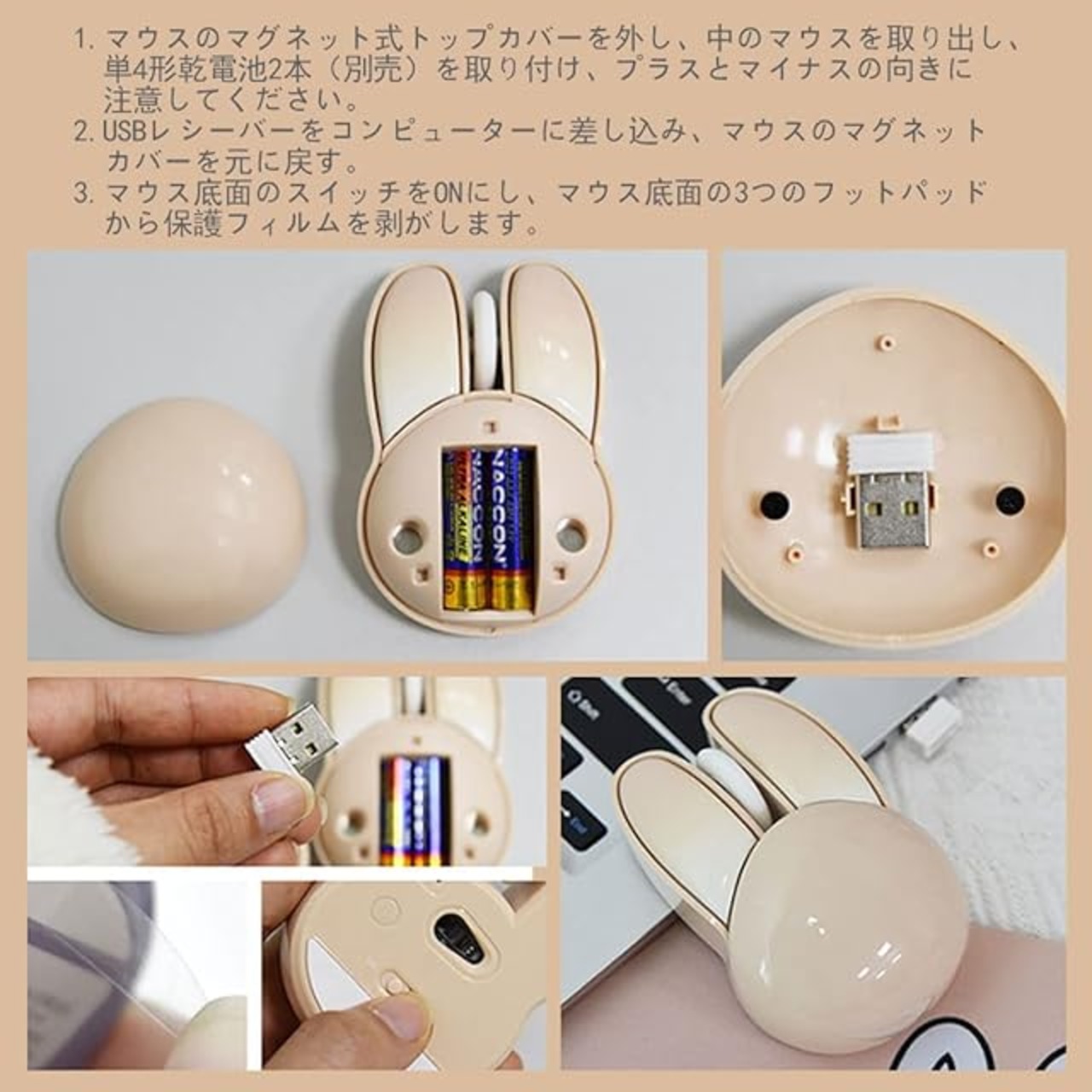 2.4GHzワイヤレス技術:USB 接続でプラグアンドプレイ、安定した接続、省電力のみ、5 分間操作しないと自動スリープ、クリックでウェイクアップ、有効範囲最大 10m、単三電池 2 本のみ必要)別売り)