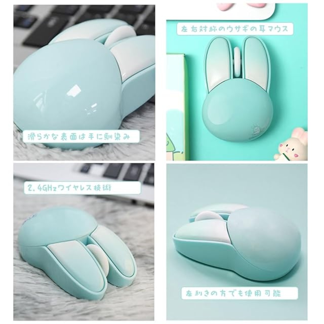 人間工学+左利きも使える:左右対称のウサギの耳マウス、左利きの方でも使用可能です; 滑らかな表面は手に馴染み、快適で涼しいタッチを与える。