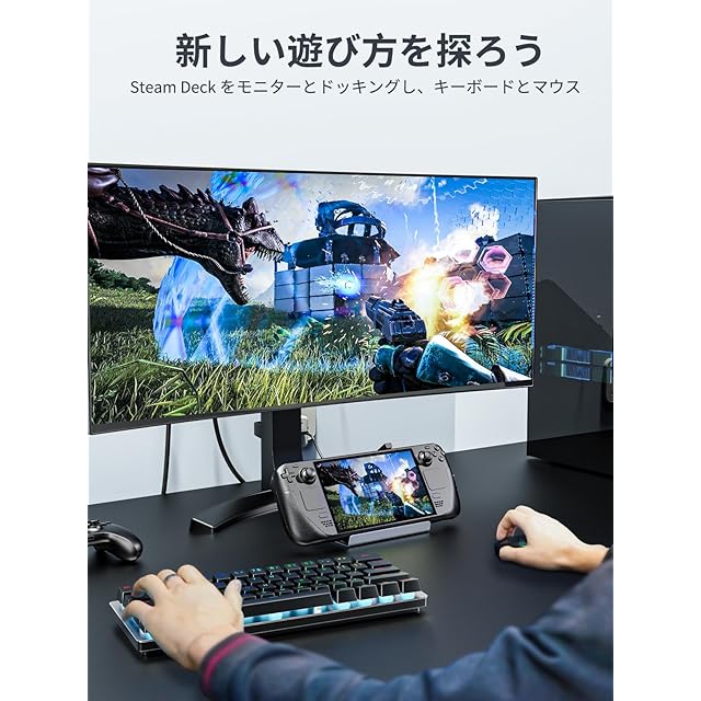 【スチームデックハブスタンド】 ベースを購入する必要がなくなる完璧な組み合わせです。これは使いやすいだけでなく、デスクトップを整理整頓しておくことができます。このドッキングステーションはSteam DeckSwitch/Roger Ally などのゲーム コンソール用に設計されていますが、USB-C ポートを備えた iPad(2018年以降にリリ-スされたiPad)やAndroid携帯電話とも互換性があります。
