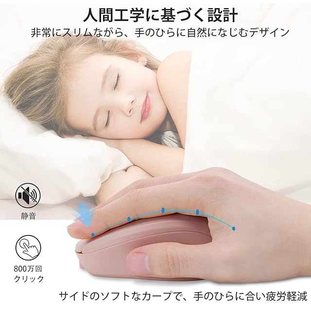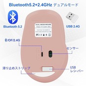 Wonzir ワイヤレスマウス Bluetooth 5.2 静音 無線 マウス Type-C充電式 3段階DPI切替 2.4GHz 光学式 Mac Windows Android iOS iPad PC Macbook対応 (Pink+ピンク) | ascend