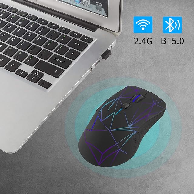 E15 ワイヤレスマウス Bluetooth 5.0 静音 2.4Ghz USB ゲーミング 大型 バックライト 充電式 6ボタン PC ノードパソコン コンピューター スマホ タブレット用 IOS Android MAC Windows対応(黒)
