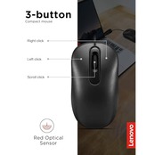 Lenovo 100 有線USBコンピューターマウス PC、ノートパソコン、Windows付きコンピューター用 - フルサイズ - 両手利きデザイン - 3ボタン - 赤色の光学センサー - ブラック | ascend