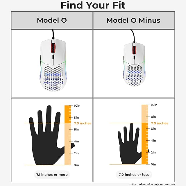 サイズとスタイル: ゲーミング用両手対応軽量マウス。スピード、コントロール、快適性を追求し、最適な重量と高い耐久性を実現。Model O- (Minus) は中~小さな手に最適。