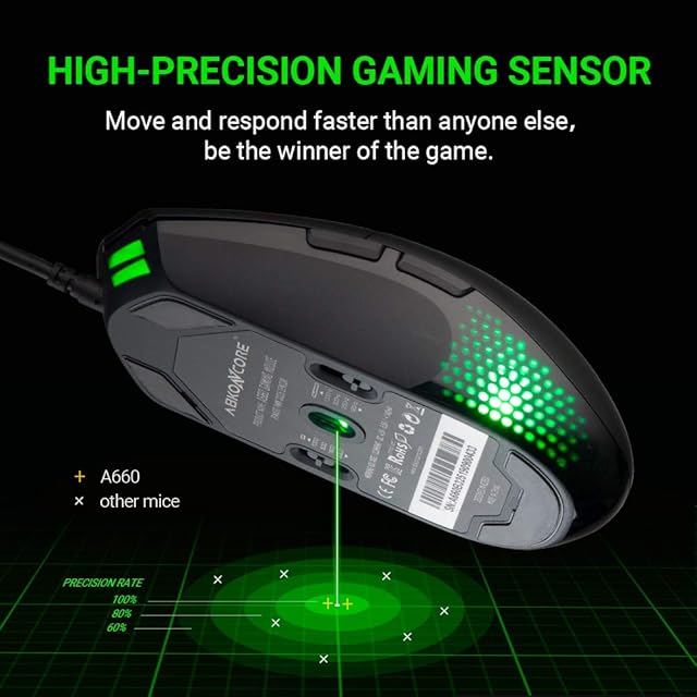 ABKONCORE AM6 AM8 ゲーミングマウス 4Dpiレベル (800、1600、2400、3200) Iプログラマブルボタン I有線人間工学USBマウス(A660)