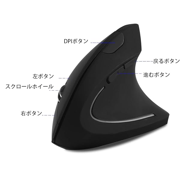エルゴノミクスマウス 垂直型 ワイヤレスマウス 電池式マウス 人間工学マウス 右利き用 縦型 800 / 1200 / 1600 DPI 6ボタン USB接続 無線マウス 呼吸LEDライト付き PC/ノートパソコン/コンピュータ Windows/MacOS 対応(無線電池式)