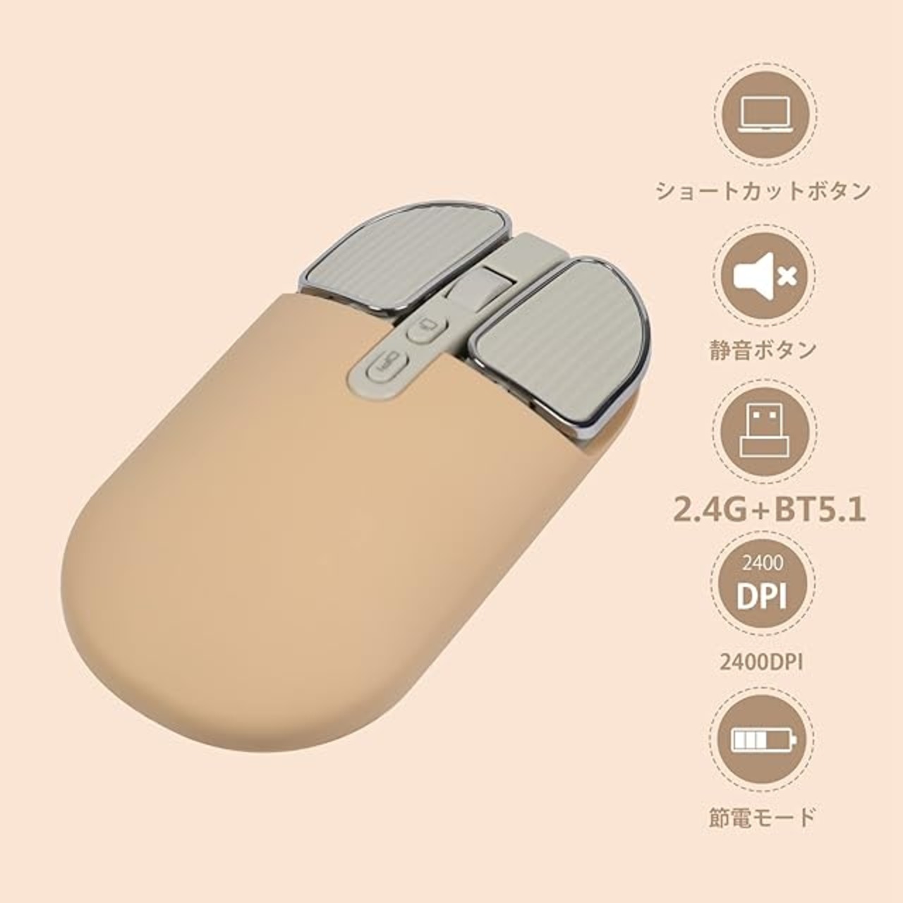 ワイヤレスマウスBluetooth 5.1 超薄型 2.4GHz USB 静音 コンパクト 手触りいい 防汗 3DPI 充電式 PC ノードパソコン スマホ タブレット用 iOS Mac Windows Chrome Android Microsoft対応(クリーム) | ascend