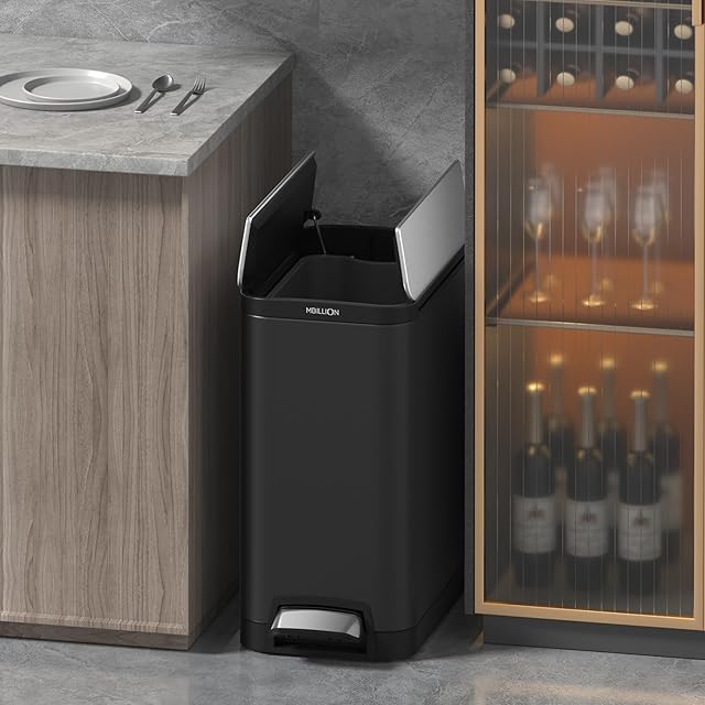 Mbillion ゴミ箱 おしゃれ スリム ペダル式 ごみ箱 ステンレス 28リットル バスルーム ゴミ箱 消臭 ダストボックス 大容量 生ゴミ ゴミ箱 インナーバケット付き 密閉 音無し キッチン 室内 リビング オフィス ブラック | ascend