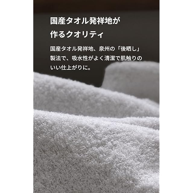 国産タオル発祥地が作るクオリティー国産タオル発祥地、泉州の「後晒し」製法で、、吸水性がよく清潔で肌触りのいい仕上がりに。