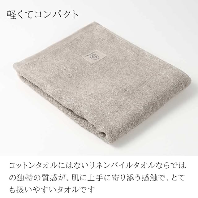 【滑らかな肌触りのリネンバスタオル】リネンでは難しいパイル地のタオルを実現!リネンユーザーにこそ使っていただきたい、なめらかな肌触り。薄手で吸水、速乾、旅行やジムなど持ち運びにも便利。ギフトやプレゼントにもおすすめです。