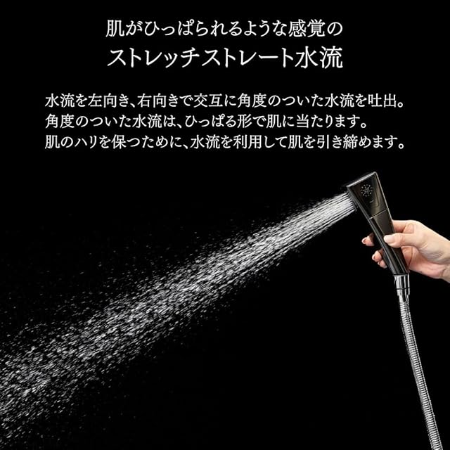 集中的にうるおう「高密度トルネードミスト水流」肌が引っ張られる感覚の「ストレッチストレート水流」撫でるように温める「ウォームストレート水流」の3種類の水流を搭載。