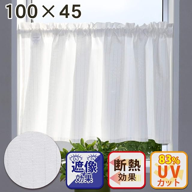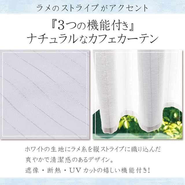 【生地】「遮像」「断熱」「UVカット83%」の嬉しい機能付き!ラメ糸を縦ストライプに織り込んだホワイト生地。爽やかで清潔感があります。