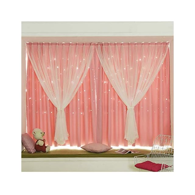 【おしゃれ】姫系遮光カーテン、レーザー切断技術より彫り出す星柄から透かし光がおベッドや床や壁などに落ちて、室内はまるで夜空に輝く星たちが煌めいてくれます。ベッドに寝る時ぐらい好きな星空を感じでき。