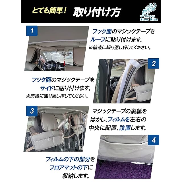 透明フィルム&ホワイトカラーのマジックテープで構成されているため、車種・デザイン問わず様々な車の雰囲気を壊さず 馴染みやすくなっております。また、取り付け&取り外しも簡単なため用途に合わせて取り付け場所の移動も可能です。