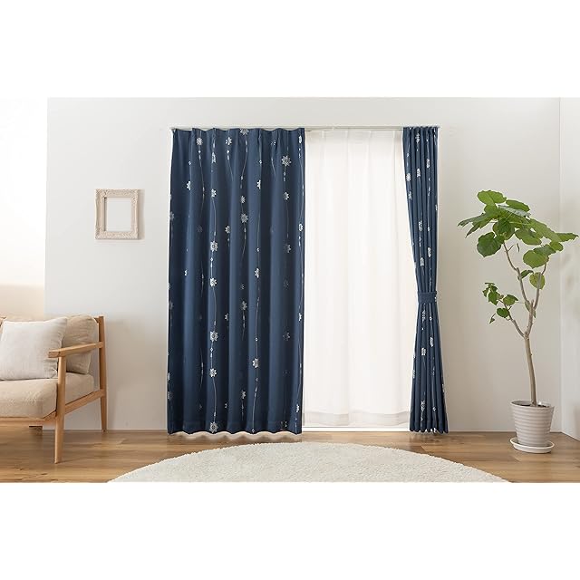 ユニベール すぐに使えるセットカーテン(レース付き) 幅100㎝×丈135㎝ 4枚組 遮光1級 UVカット70%以上 省エネ 昼見えにくい ミラー ネイビー 4Pセラス | ascend