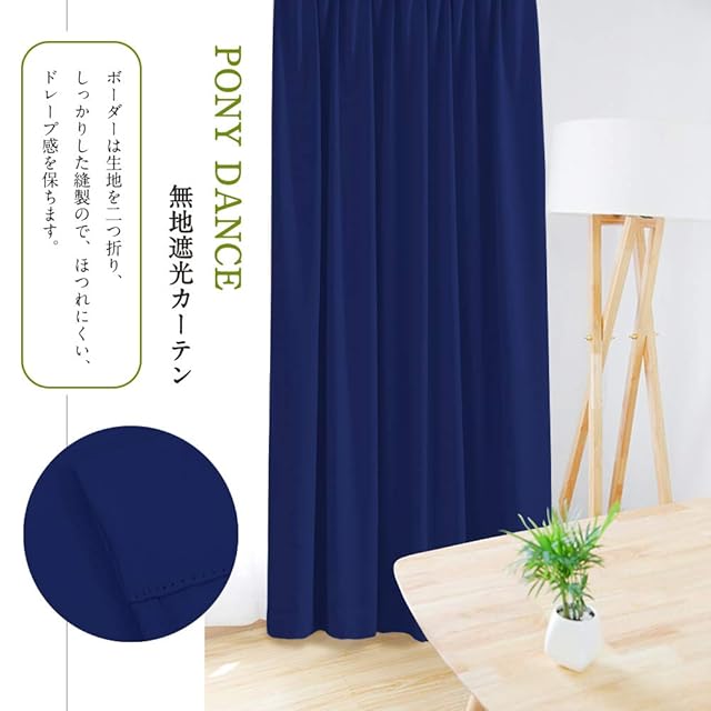 PONY DANCE カーテン 間仕切り 1級遮光 幅150cm丈135cm 1枚 断熱 保温 防寒 省エネ 寝室用 リビング用 賃貸屋 シンプル 厚手 無地 北欧 おしゃれ ホテル 収納 ワードローブ 玄関 ダークブルー | ascend