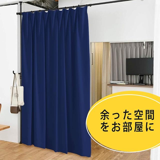【幅広対応】無地の生地でお部屋の雰囲気に合わせやすいですので、快適で優雅な室内環境を提供することができます。普通にドレープカーテンとしてはもちろん、リビングダイニングや子供部屋を2人用にサッと間仕切り!使用しないときは10㎝程度にたたんでおけますので通り抜けの邪魔になりません。また、デッドスペースを生かして洋服の収納などにもピッタリです。