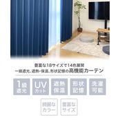 ◆1級遮光(99.99%)&形状記憶付きカーテン ◆幅100cmx丈178cm 2枚組 *全色同じ生地を使用しておりますが、1級遮光の中でも濃色ほど遮光率は高まります。
