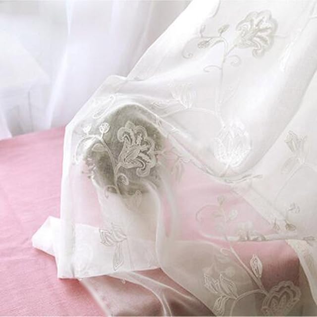 Pureaqu おしゃれ レースカーテン 花柄 遮熱 自然の風を通し 薄い 刺繍ホワイトカーテンチュール 窓ガーゼ リビングルーム 間仕切り 窓装飾 取り外し簡単 1組2枚入り 幅150cm×丈178cm | ascend