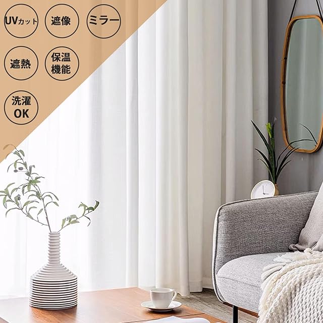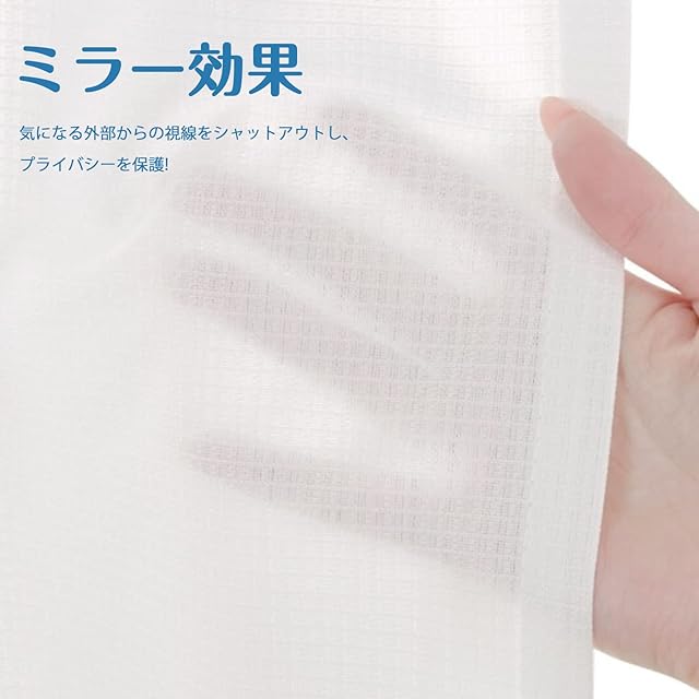 ミラー効果:光沢糸を織りこみ、光を反射することで、日中外から見えにくいミラーレースカーテンです。昼も夜も透けにくく、プライバシーをきちんと守ってくれます。