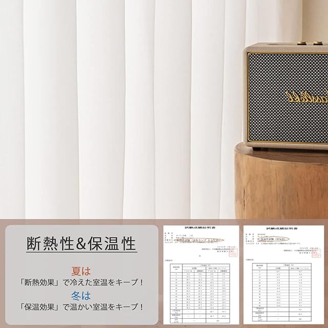 遮熱効果:透けない生地で、夏は「断熱効果」で冷えた室温をキープし、冬は「保温効果」で温かい室温をキープします。外気を遮り、お部屋の空気を逃がしにくくします。これにより冷暖房の効率をあげ、節電対策になります。