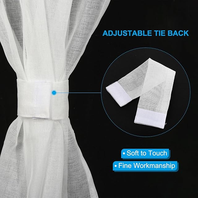利点:厚手で耐久性のある素材で作られており、手触りが柔らかく耐摩耗性があります。アジャスタブルタイバックは、部屋に入る光の量を調節する柔軟性を提供します。カーテンを飾るために結ぶために使用することができます。