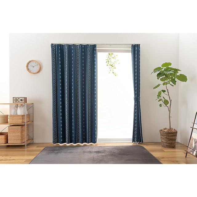 ユニベール ドレープカーテン 幅100㎝×丈105㎝ 2枚組 遮光2級 形状記憶 洗える ネイビー フォーク