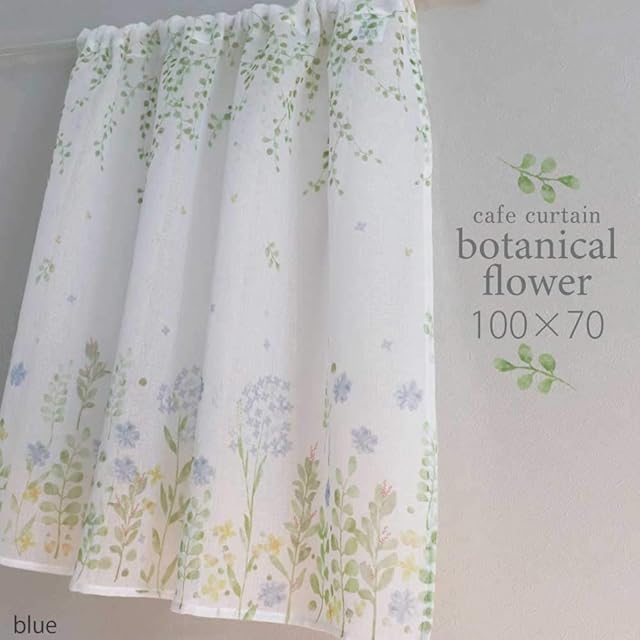 【窓辺を華やかに彩るボイルカフェカーテン】ふわっと軽く、シャリ感のある薄手ボイル生地に可愛い草花をプリントしました。透け感があり、そよ風に揺れる様はとても華やかです。棚の目隠しにもおススメ。
