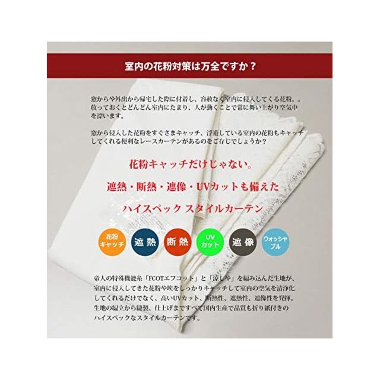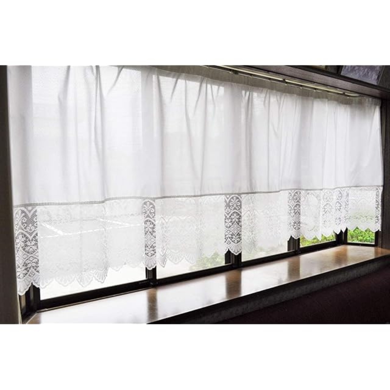 カエイレース(Kaei-lace) レースカーテン ホワイト 300×105cm 出窓用 日本製 花粉キャッチ・遮熱・断熱・UVカット・遮像 25012kaf-300105