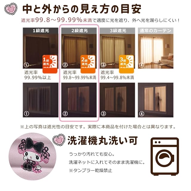 サンリオ(SANRIO) クロミ マイメロディ 2級遮光カーテン 幅100×丈110cm:2枚組 SB-617-S 遮熱 洗濯可 UVカット 形状安定 真夜中のメロクロ