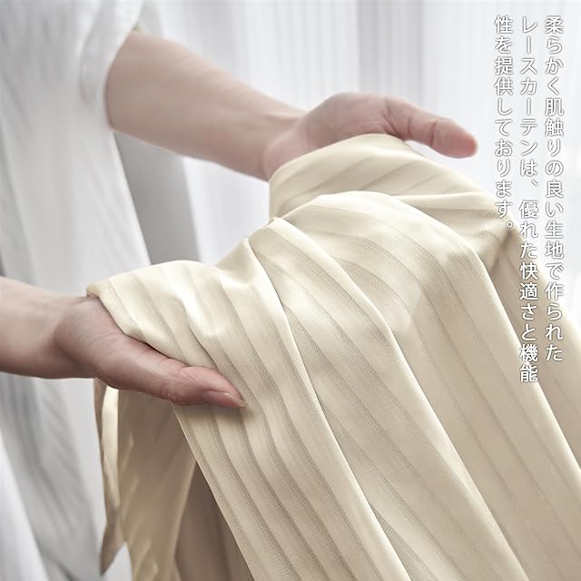 【UVカット】:当レースカーテンは昼間明るくて、圧迫感がないです。紫外線対策でおすすめ致します。大切な家具や畳、お肌の日焼けトラブルなども防いでくれます。単独で使うこともできますし、他のカーテンと一緒に使うこともできます、実用性が高いです。