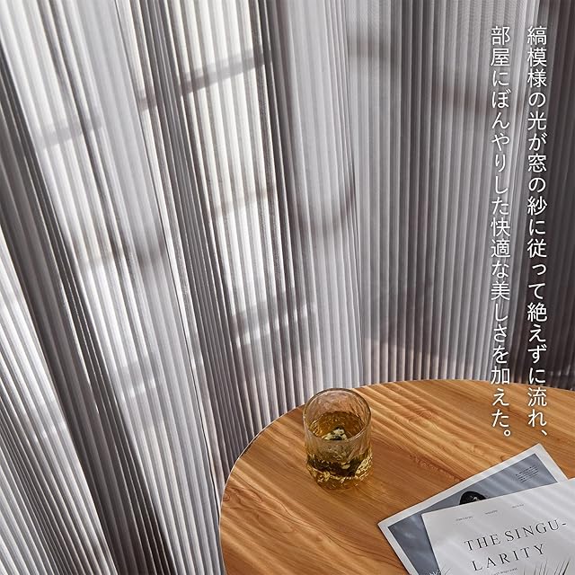 【シャレなデザイン】ストライプのデザインは日差しを柔らかくしながら光を捉えます。縞模様の光が窓の紗に従って絶えずに流れ、部屋にぼんやりした快適な美しさを加えた。
