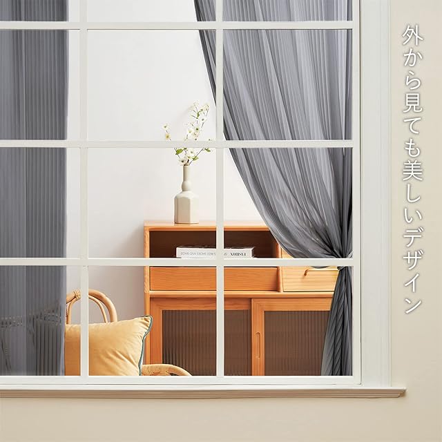 【目隠し効果】:室内からは外の景色が良く見えますが、外から見ると透けにくい効果があります。部屋が暗くなることなく、目隠しにもなり、外からの視線を遮断します。リビングルームやベランダなどに適しています。