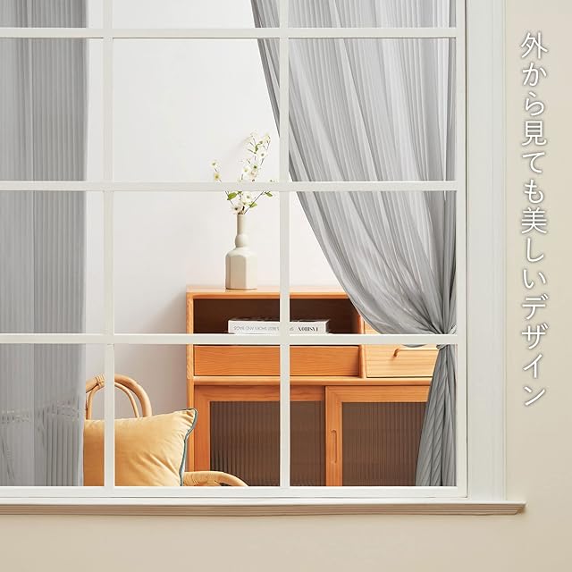 【目隠し効果】:室内からは外の景色が良く見えますが、外から見ると透けにくい効果があります。部屋が暗くなることなく、目隠しにもなり、外からの視線を遮断します。リビングルームやベランダなどに適しています。