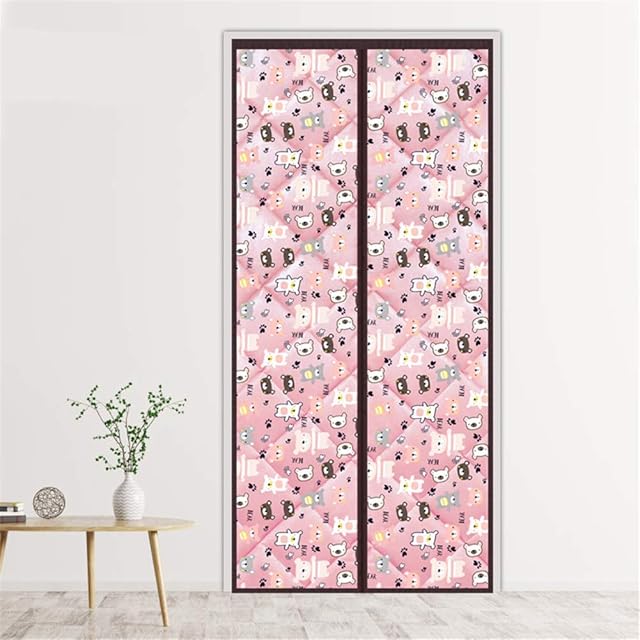Liveinu コットンカーテン 玄関 ドア用 マグネット暖簾自動で閉まる 間仕切りカーテン 冬 厚い 冷暖房効率UP 省電対策 高断熱 遮光 ドア パネル 冬は暖かい 取り付け簡単 断熱 防音 保温 防寒 防水 遮光 防風のれん 130x220cm PUレザーピンク 2