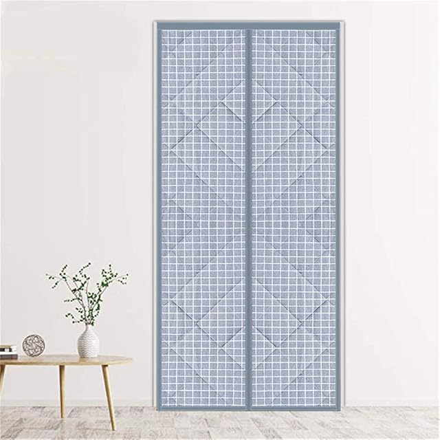 Liveinu コットンカーテン 玄関 ドア用 マグネット暖簾自動で閉まる 間仕切りカーテン 冬 厚い 冷暖房効率UP 省電対策 高断熱 遮光 ドア パネル 冬は暖かい 取り付け簡単 断熱 防音 保温 防寒 防水 遮光 防風のれん 150x220cm 格子縞のグレー