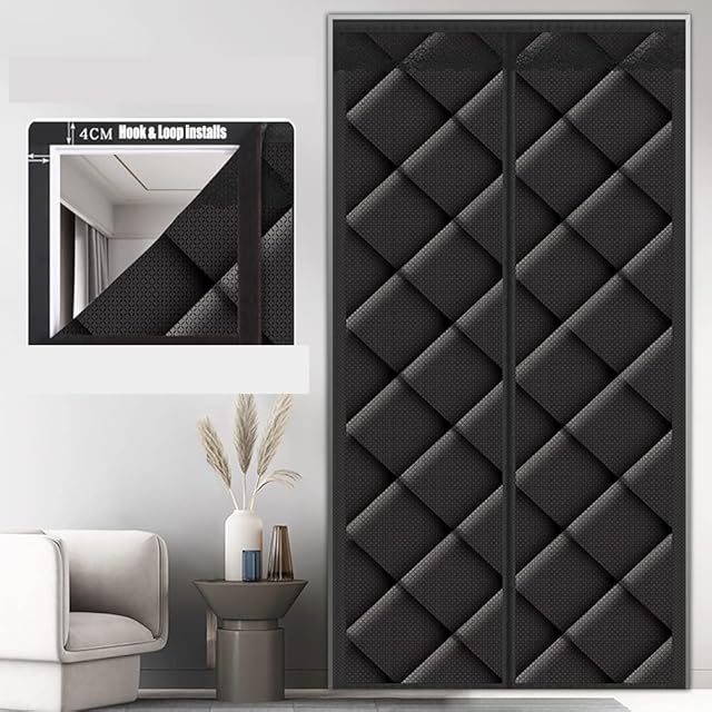 Liveinu コットンカーテン 玄関 ドア用 マグネット暖簾自動で閉まる 間仕切りカーテン 冬 厚い 冷暖房効率UP 省電対策 高断熱 遮光 ドア パネル 冬は暖かい 取り付け簡単 断熱 防音 保温 防寒 防水 遮光 防風のれん 90x200cm グレー