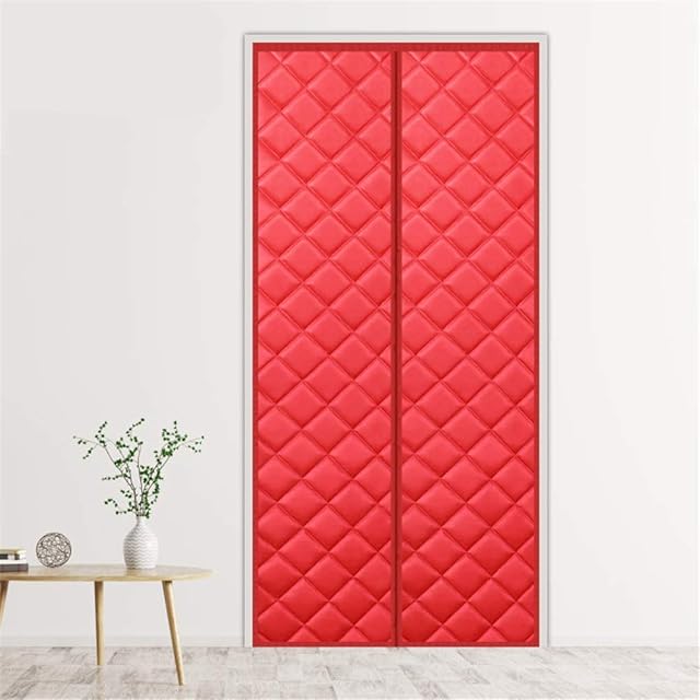 Liveinu コットンカーテン 玄関 ドア用 マグネット暖簾自動で閉まる 間仕切りカーテン 冬 厚い 冷暖房効率UP 省電対策 高断熱 遮光 ドア パネル 冬は暖かい 取り付け簡単 断熱 防音 保温 防寒 防水 遮光 防風のれん 120x230cm レッド