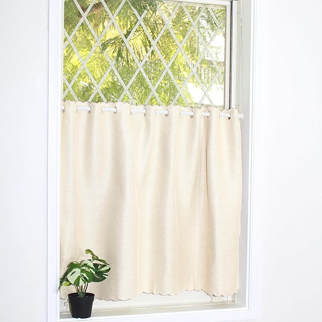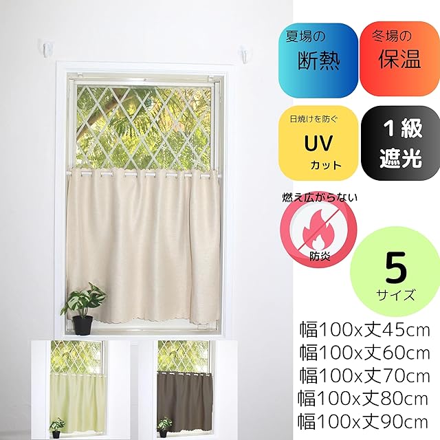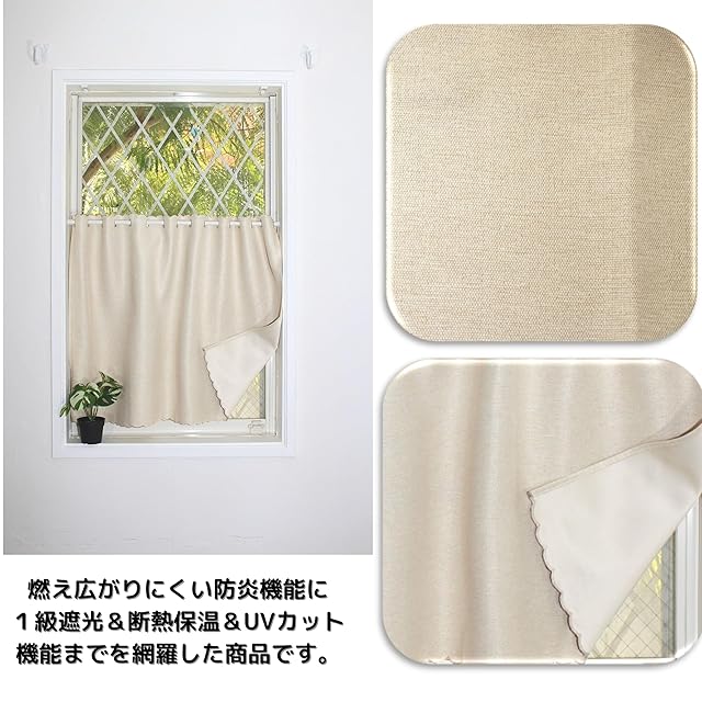 【製品・カラー・サイズ】 カフェカーテン・ カチヨンミックス・アイボリー [防炎・遮光1級・断熱・保温] ・ 幅100cm x 丈60cm [1枚入] 適応窓サイズ:幅40 - 80cm