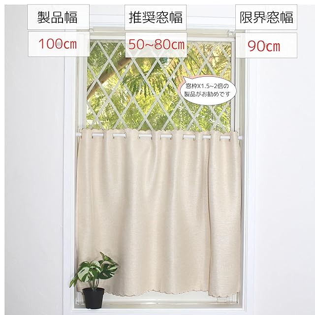 【製品・カラー・サイズ】 カフェカーテン・ カチヨンミックス・アイボリー [防炎・遮光1級・断熱・保温] ・ 幅100cm x 丈80cm [1枚入] 適応窓サイズ:幅40 - 80cm