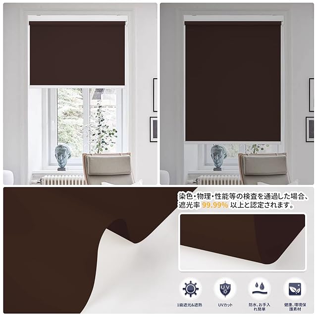 Grandekor ロールスクリーン 1級遮光 無地 ロールカーテン チェーン式 表裏同色 UVカット・防音・断熱 防寒 カーテンレール取付可能 (ビター 幅60x丈180CM)