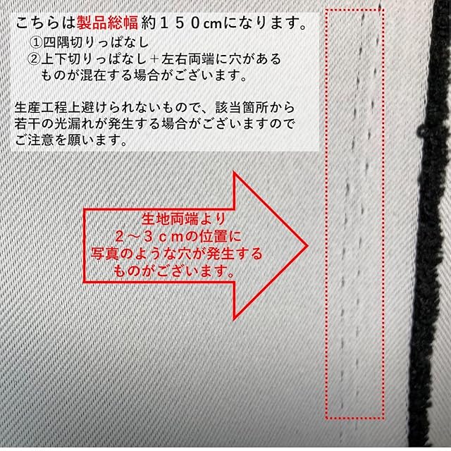 【商品特徴】 ブラック [遮光1級] 生地幅約150cm x 長さ約1.0mでカットした生地の切り売りとなります。生地の両端・上下 カット位置は切りっぱなしの状態となります。詳しくはサブ画像をご確認ください。